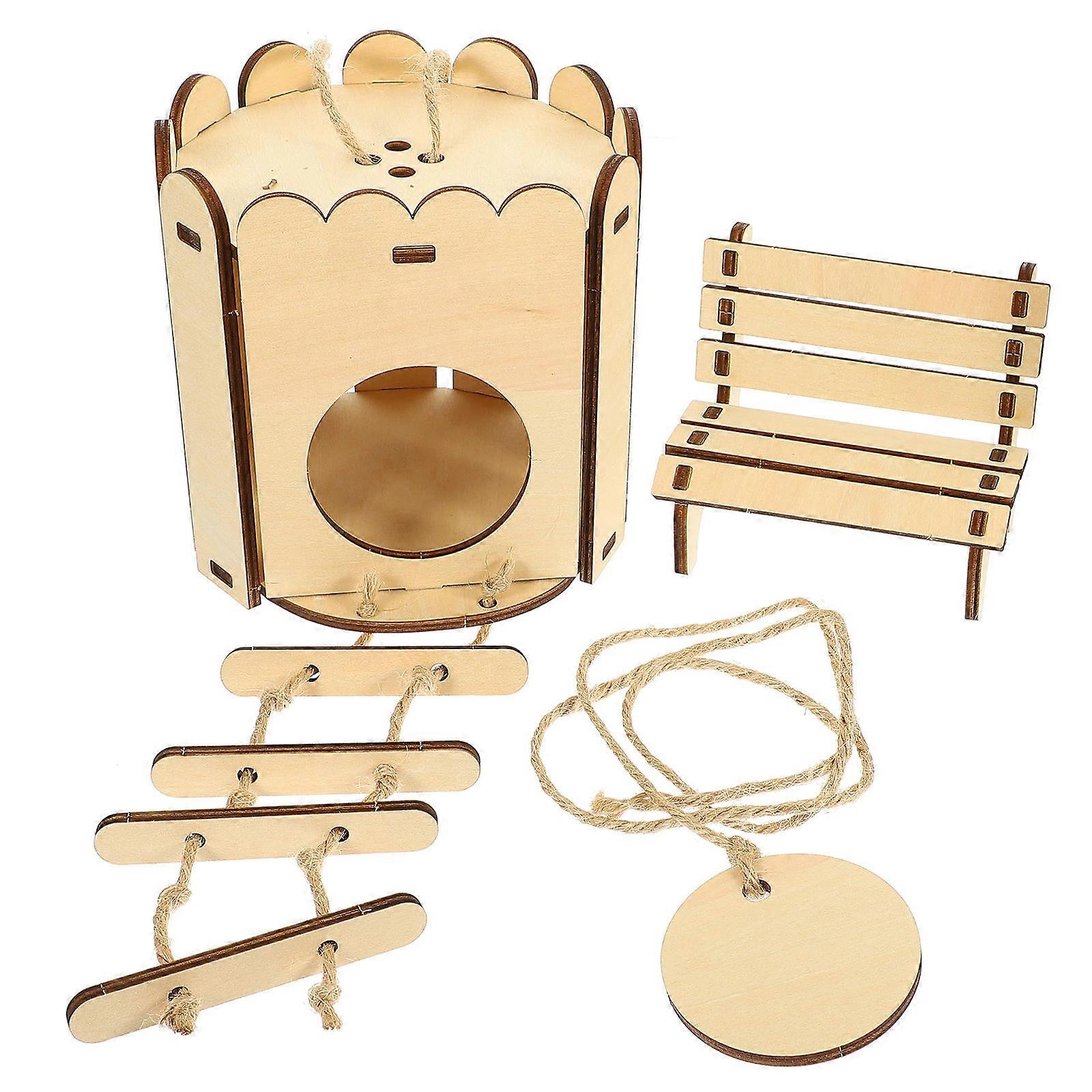 Wood Hamster Toy DIY Assembly Hideout Set for Small Pets with Nest and Chair 4Pcs