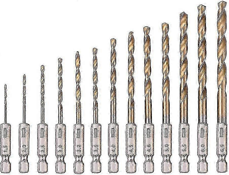 Jinyu Titanium Coated Twist Drill Bit Set with Hex Shank - Quick Change Drill Bits for Steel, Wood, Plastic & Aluminum (13-Piece Set)