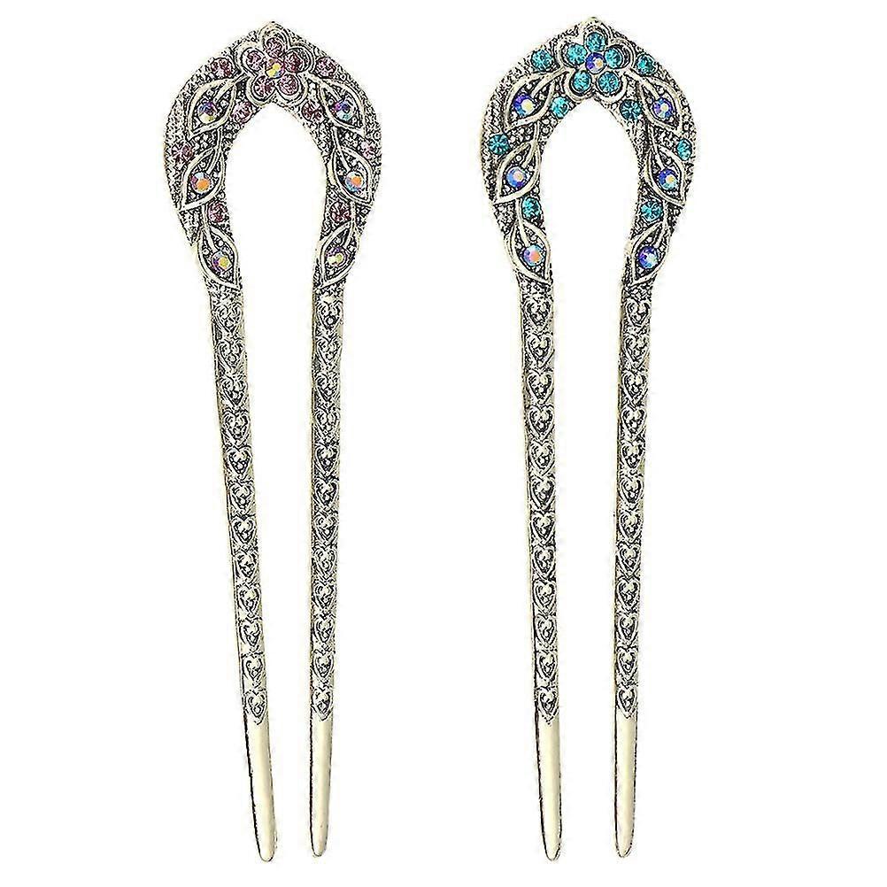 Elegant Vintage Hair Stick Set - Crystal Rhinestone Double Prong Hairpins for Stylish Hairstyles & Special Occasions