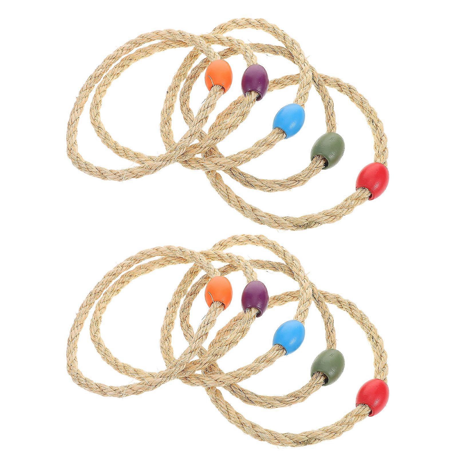 Outdoor Ring Toss Game Set for Families and Children for School Events Backyard and Beach Wooden Rope Material Hand-Eye Coordination 10Pcs