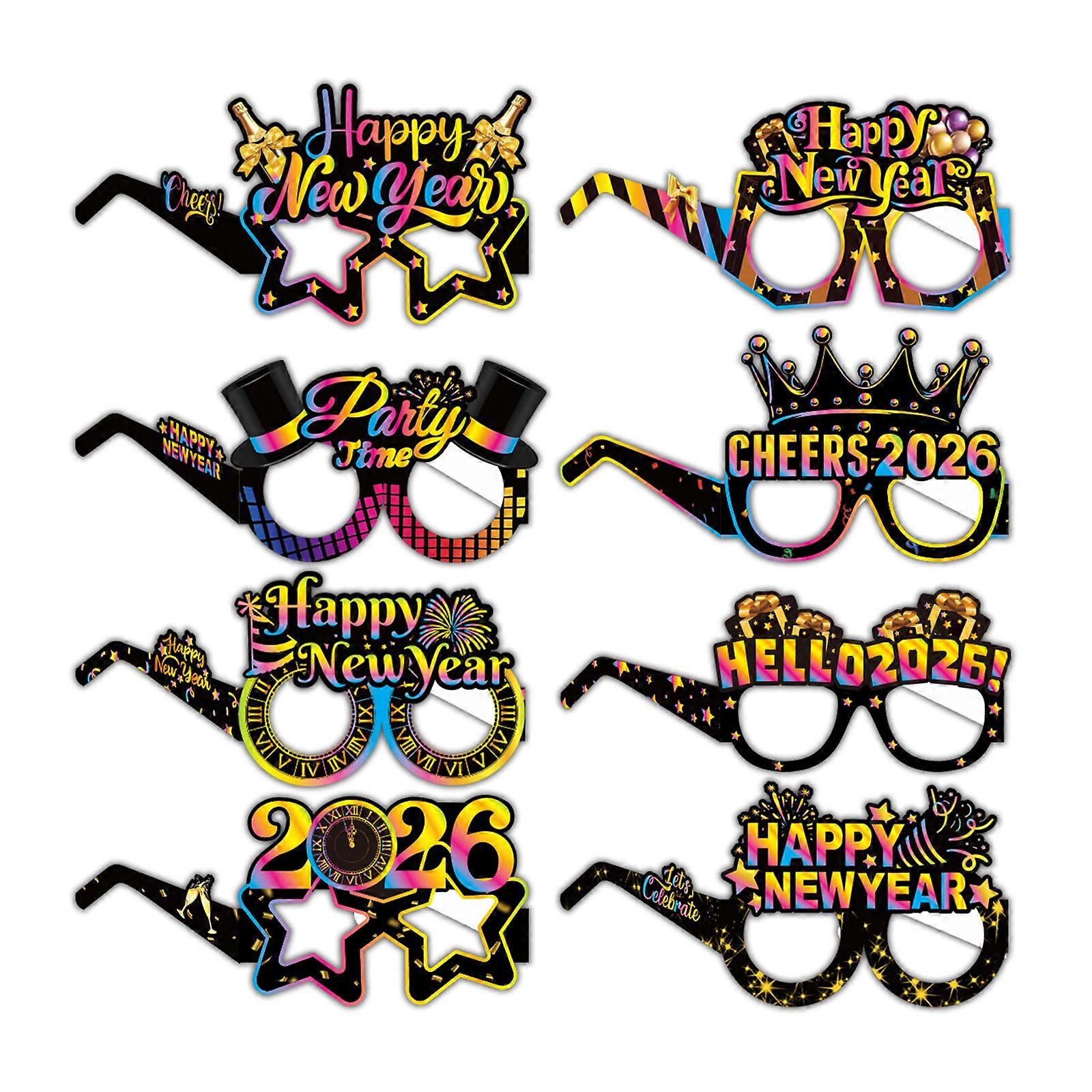 8 Pcs 2026 Themed Paper Glasses Set For Adult Costume Parties New Year Celebration Accessories Multicolor