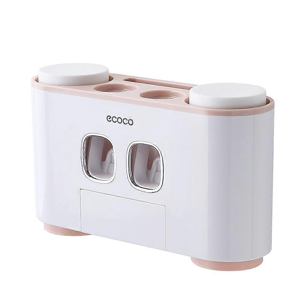 Automatic Wall-Mounted Toothpaste Dispenser Set with 4 Cups, Pink