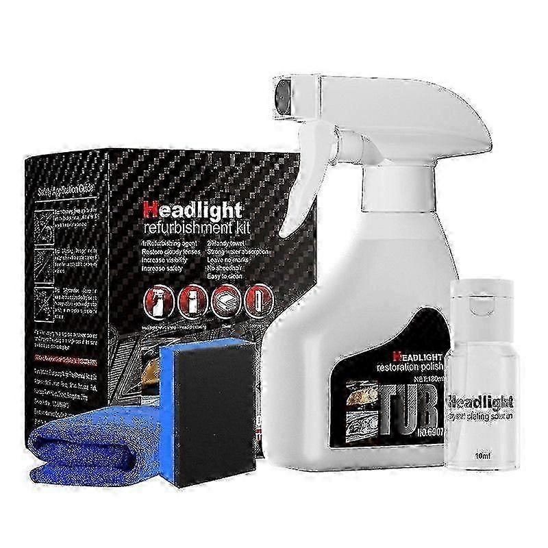 Headlight Treatment Liquid Set 180ml, Pro Headlight Regenerator, Liquid Headlight Repair Agent, Car Headlight Polish Spray for Brighter, Clear Vision