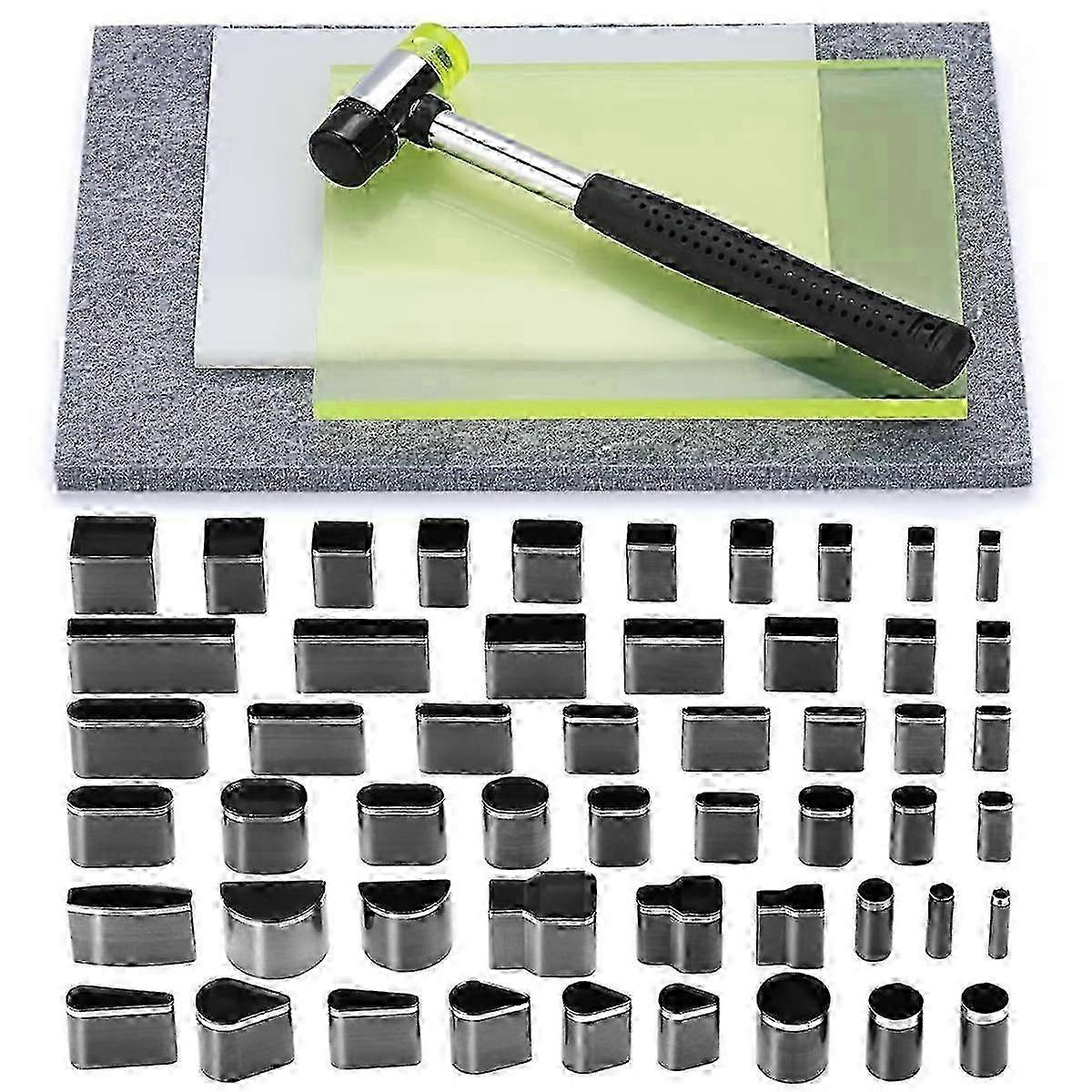 52 Shape Leather Punch Set, Hollow Hole Punching Tool With Nylon Hammer And Sound Absorbing Pad For Diy Leather Crafts
