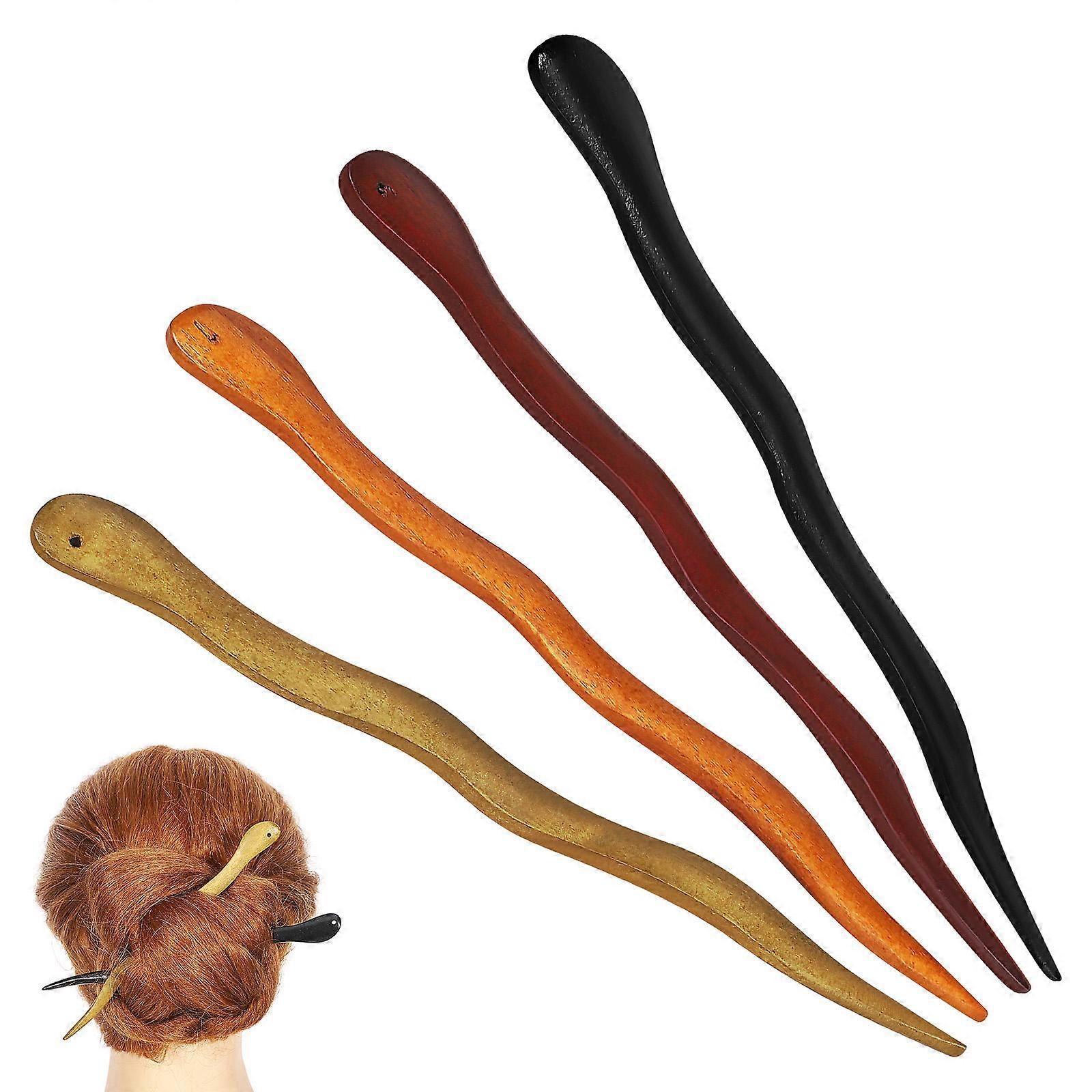 Wooden Hair Pins Set 4PCS Decorative Hair Sticks Clip Style for Women, Sandalwood Scented, Assorted Colors, Elegant Traditional & Modern Updo