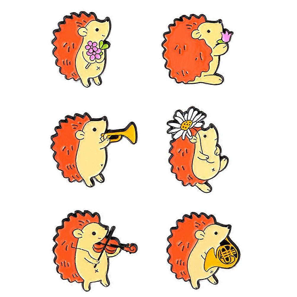 Cartoon Hedgehog Brooch Set 6Pcs Assorted Color Fashion Style Decorative Accessories for Children Parties