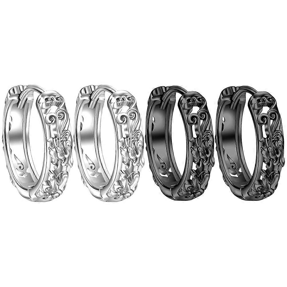 Hoop Mens Earrings Set Ethnic Wind Style Black Gold Color 1.5x1.5x0.3cm Size 2Pairs Ear Decoration Gift