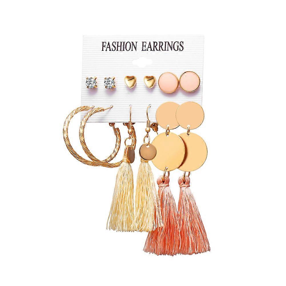 Bohemia Tassel Earrings Set Ear Pins Heart Diamond Stud for Women 12Pairs