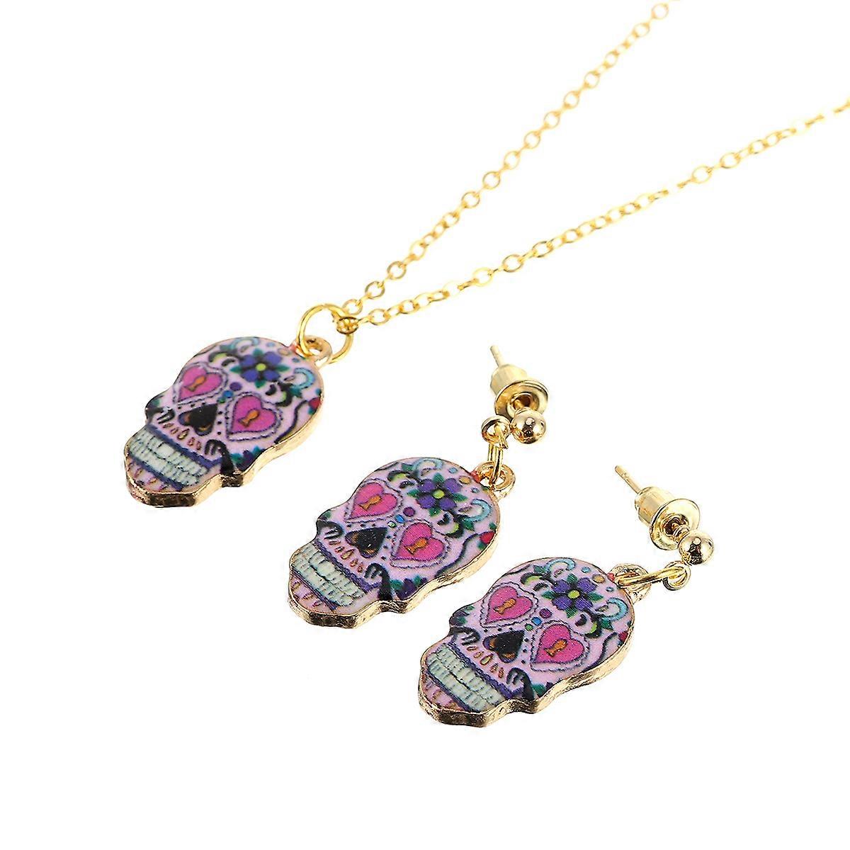 Skull Necklace Earring Set for Women 3Pcs Stylish Halloween Party Jewelry Set