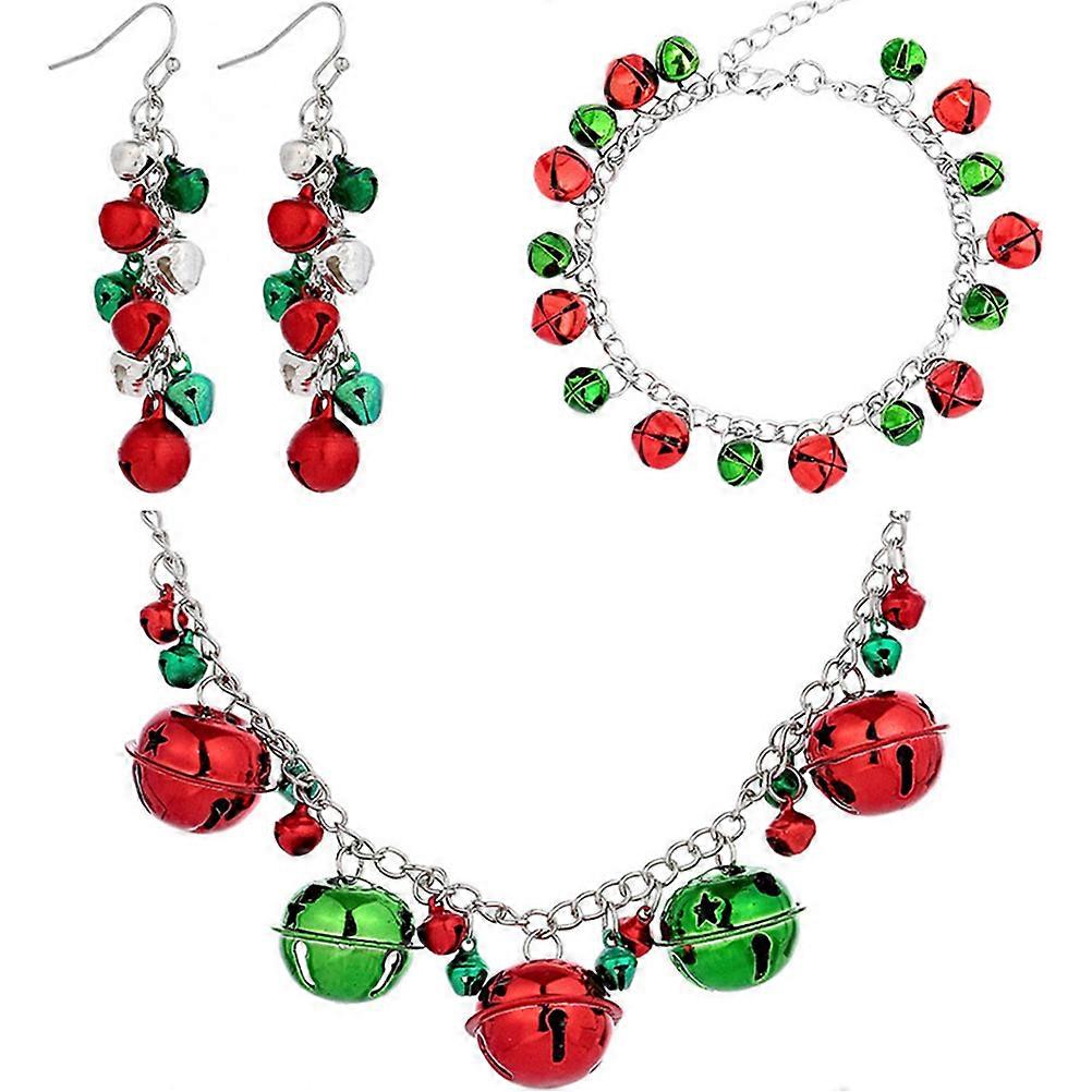 Christmas Bell Earrings Bracelet Necklace Set for Christmas 3Sets