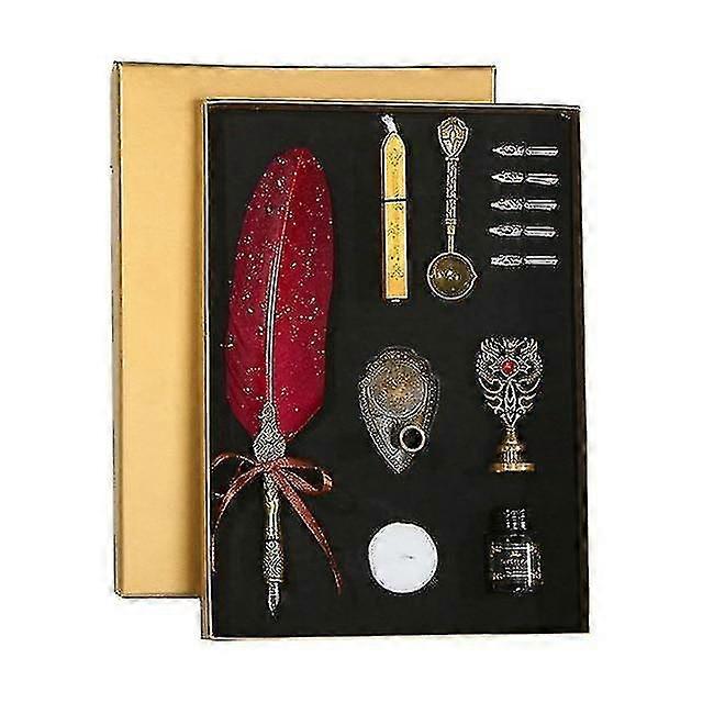 Red Vintage Retro Feather Pen Set Sprinkle Gold Luxury Quill Dip Calligraphy Fountain Pen Gift Box Cai807 25-26s