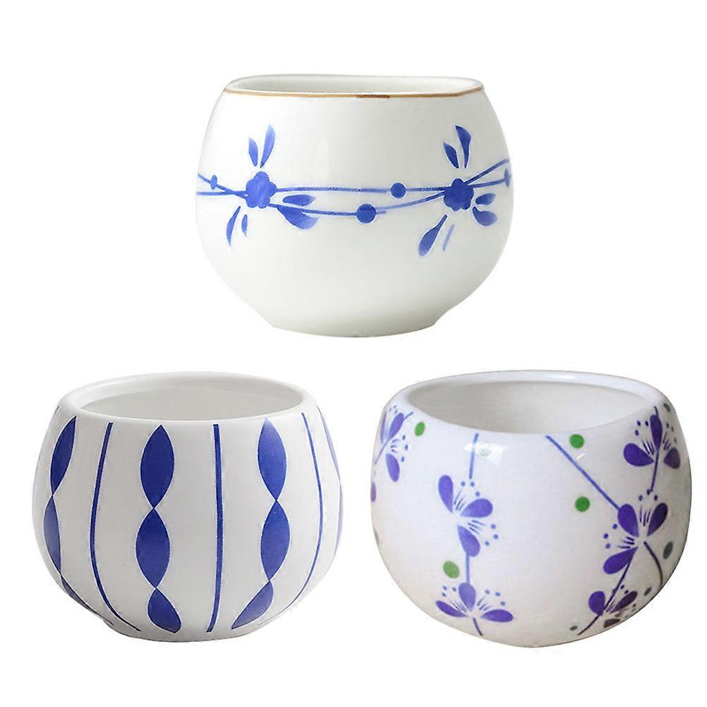 Terracotta Succulent Pots Set Breathable Cactus Plant Pot Container Blue Striped 3Pcs
