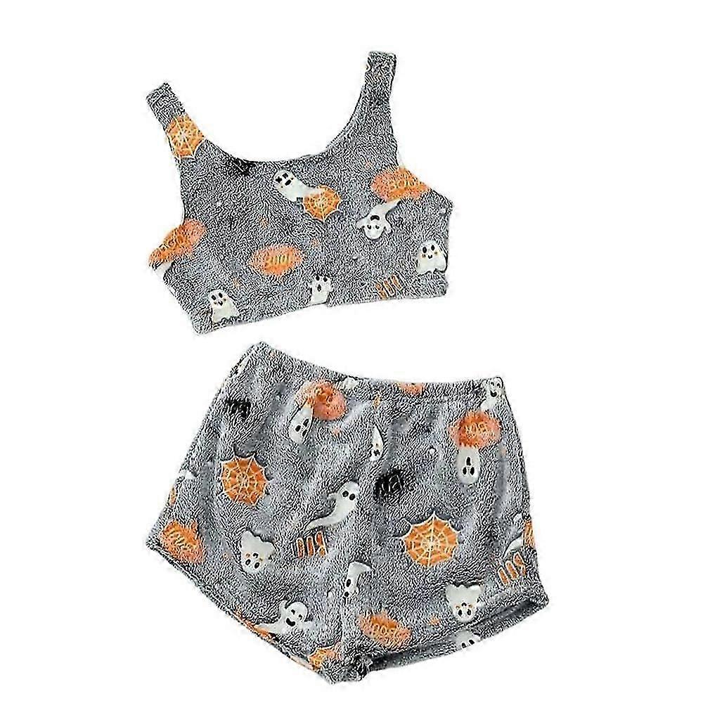 2024 Spooky Vest Pajamas Set Flannel, Women Halloween Print Glow In Dark Sleepwear, Ladies Luminous Pyjamas Set
