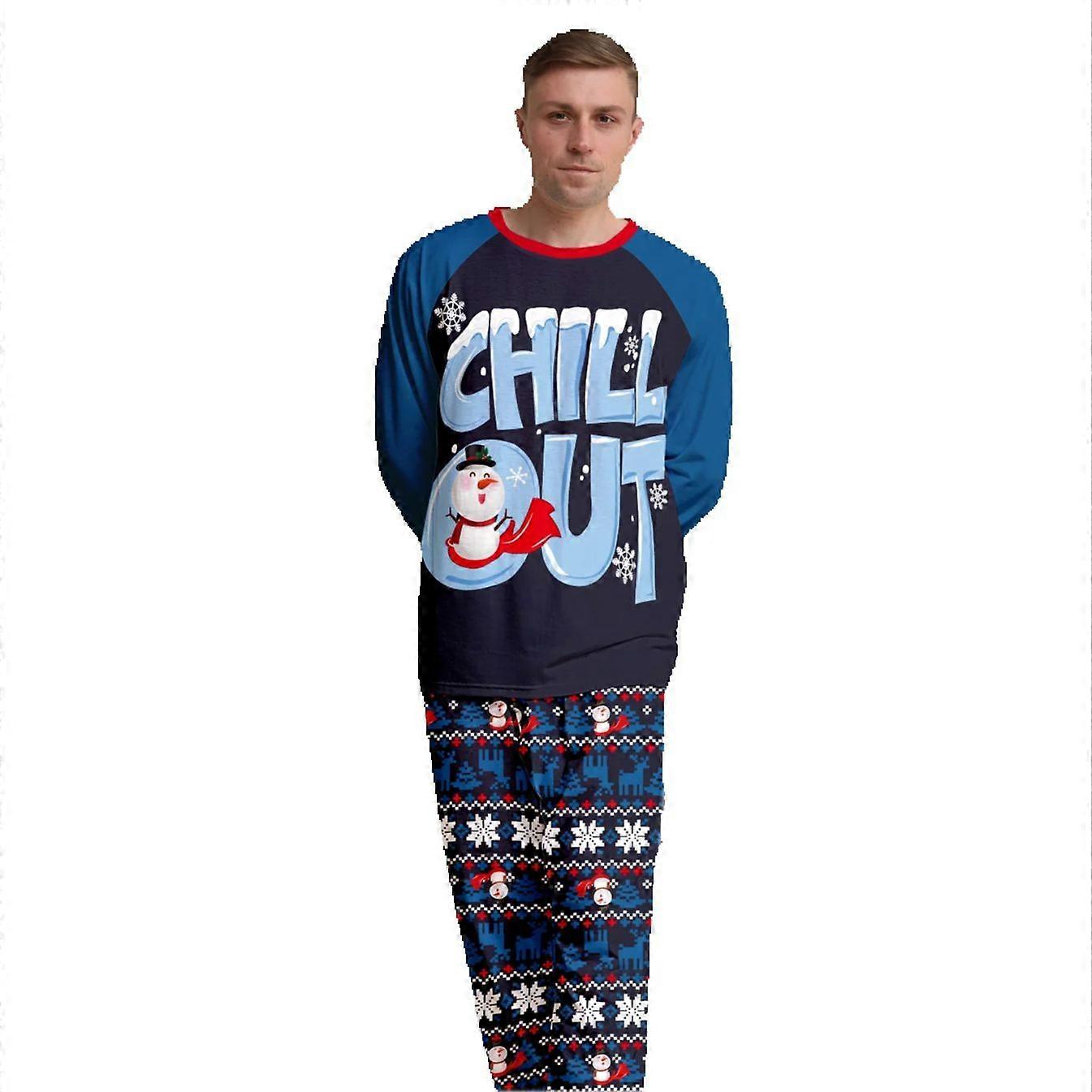 Men's Christmas Pajamas Set with "CHILL OUT" & Snowman Print, Festive Xmas Loungewear