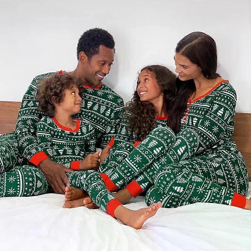 2 Colors Family Matching Christmas Pajamas Set 2-Piece Cozy Pajamas for Mom Dad and Kids Soft Holiday Sleepwear with Cute Design