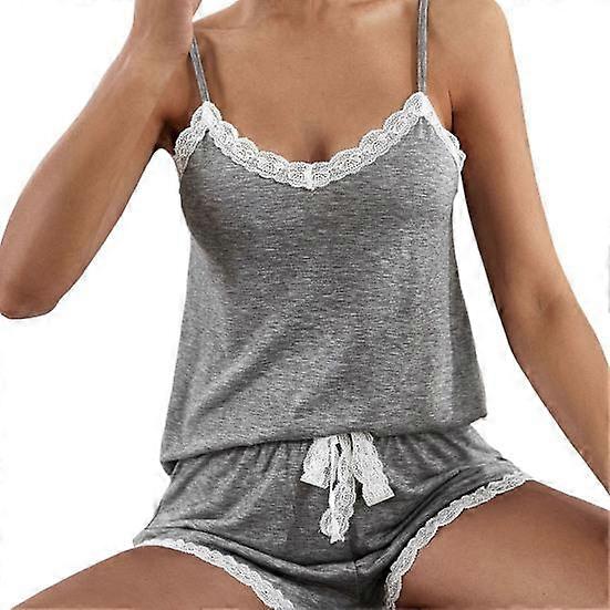 Women Pajama Set Sexy Lace Soft Elastic Waist Contrast Color Sleeveless Tank Top Loose Shorts Nightwear
