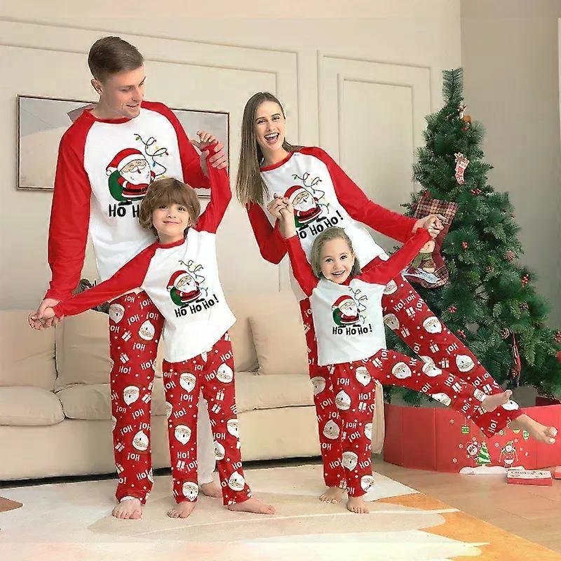 2025 Christmas Family Matching Outfits Cute Santa Print Pajamas Set 2 Pieces Tops+Pants Soft Loose Xmas Sleepwear Look Pyjamas