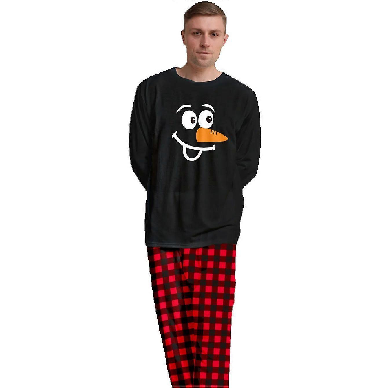 Men's Christmas Pajamas Set with Plaid Reindeer Print, Color - Block Top & Checkered Pants, Festive Xmas Loungewear