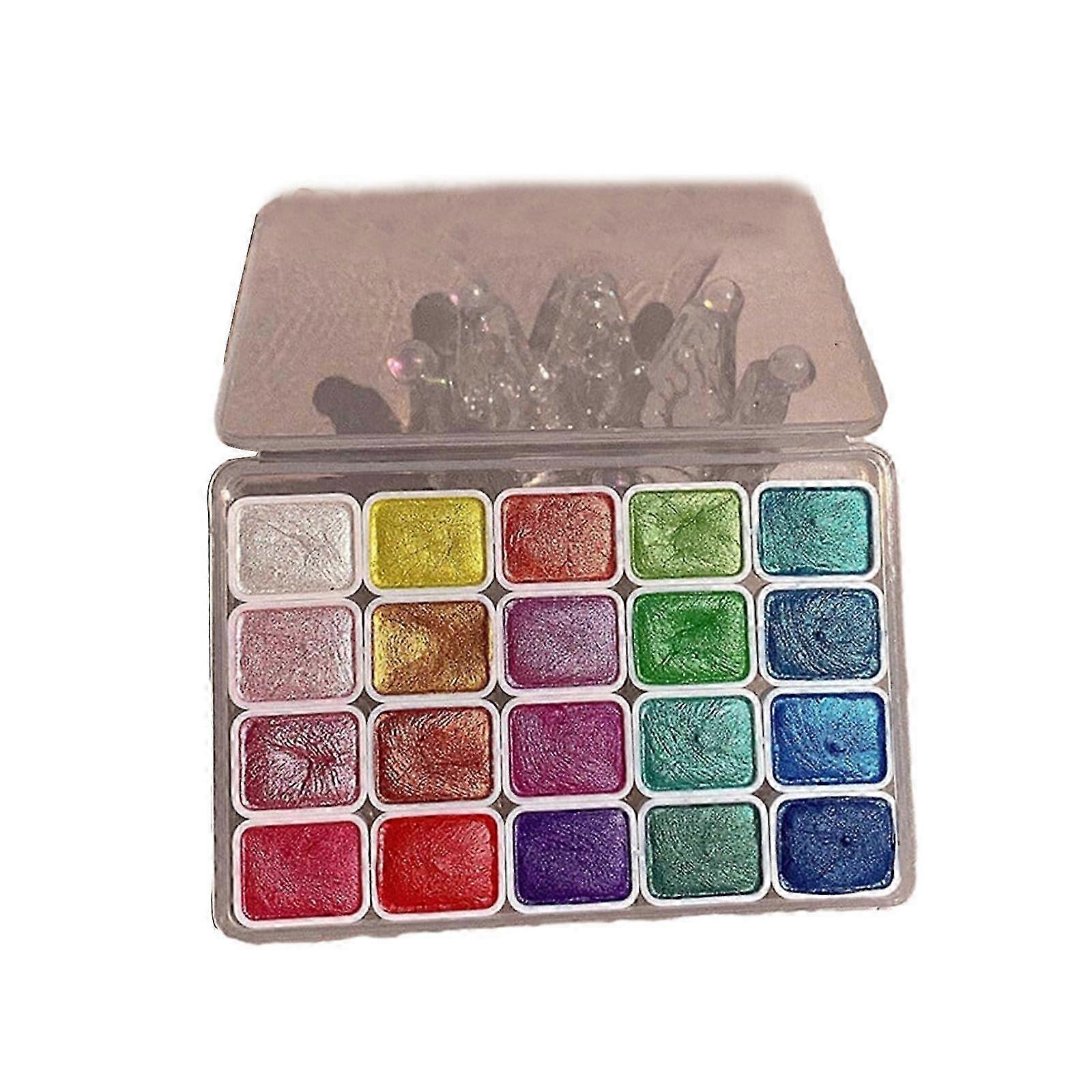 Features 1. 20 Color Watercolor Painting Set: This sparkling metal watercolor painting set is suitable for beginners, painting enthusiasts, and artists. You can draw anywhere, and the results and demonstrations will definitely show you its enormous value. 2. The color quality is delicate, with high color rendering, and the ultimate combination. Pearlescent pigments will shine beautifully under light or sunlight. 3. Shiny Effect: All colors are finely ground with mineral mica pigments and natural gum. Each color has a sparkling effect, making your work shine in this watercolor set. 4. High Quality: High quality pigments ensure extraordinary light resistance, allowing your work to withstand the test of time and ensuring that it is as charming as the day of painting. 5. Excellent Gift: This multifunctional low gloss metal watercolor pigment set is an excellent gift for beginners and professionals. Specification Main Ingredients: mineral mica pigment, natural arabic gum Capacity: 1ml Color: Multicolor Style: Luoshen, Qingfeng Size: 10 x 7 x 1 cm Weight: 60 g Package Include: 1x 20 Color Watercolor Set Note: Due to the light and screen setting difference, the item's color may be slightly different from the pictures. Please allow slight dimension difference due to different manual measurement.