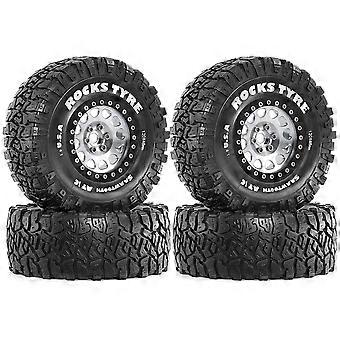 Beadlock Wheel Rim Rubber Tire Set for 1/10 RC Crawler Car Silver