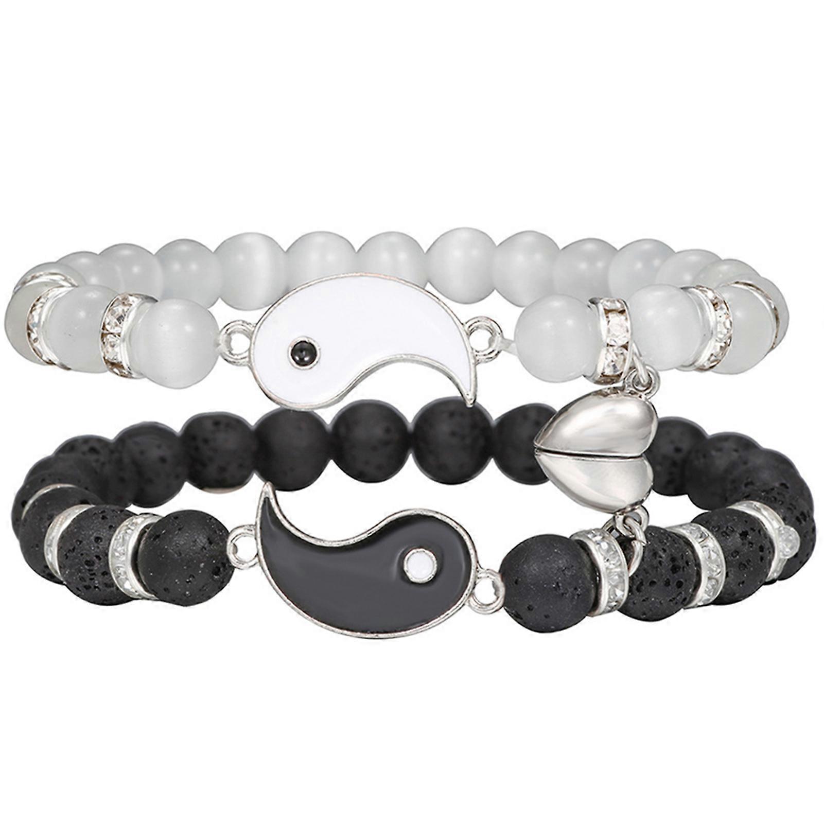 2pcs Magnetic Couple Bracelet Set, Matching Hearts Yin Yang Bracelet, Beaded Bracelet for Men & Women, Friendship, Valentine's Day Gift