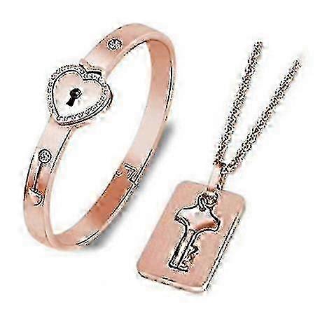 2025 Heart Lock Bracelet and Key Necklace Set, Perfect Couples Gift for Anniversary