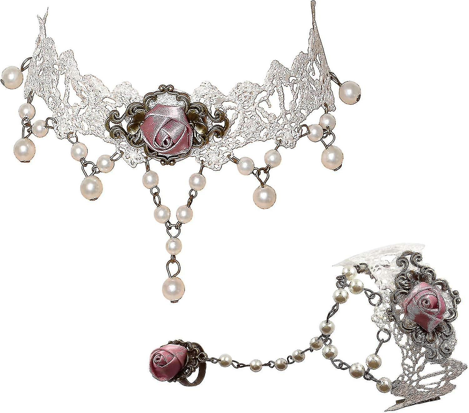 Vintage Lace Choker Bracelet Set: Gothic Halloween Jewelry