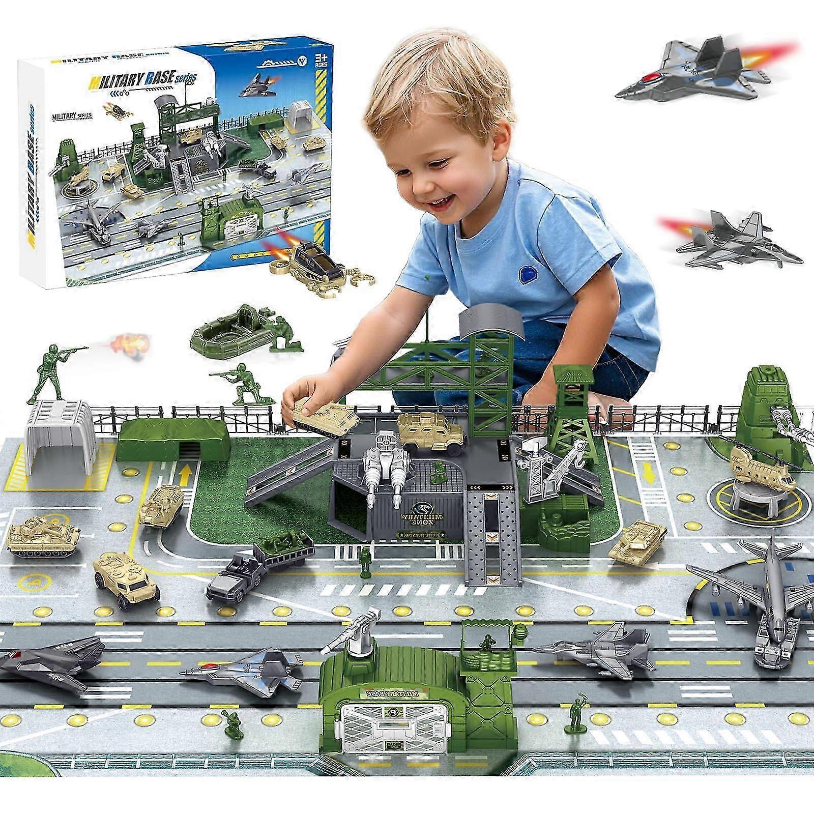 2025 Kids Army Toy Military Base Playset with Tank, Airplane, Helicopter Soldiers Ages 3