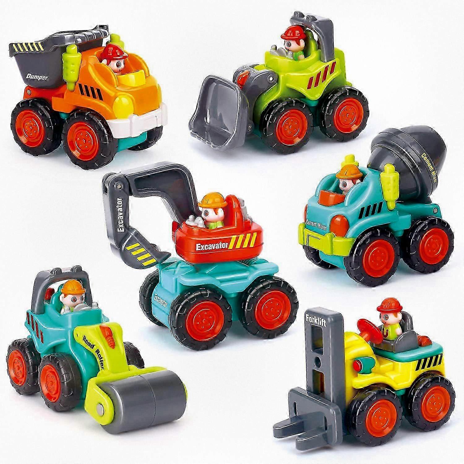 Kids Construction Vehicle Toy Set - Dump Truck, Digger, Bulldozer, Mixer Truck, Lift Truck, Road Roller, Building Site Toys for Children