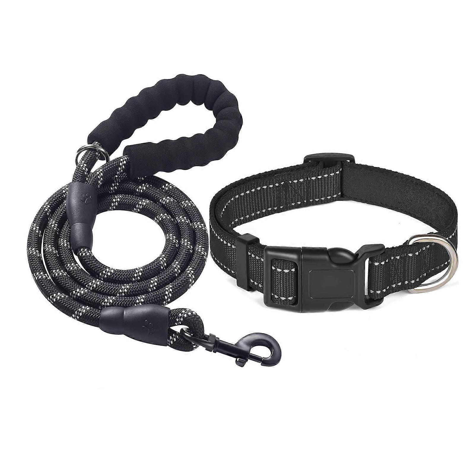 Reflective Dog Collar And Leash Set 5FT Traction Rope Nylon Pet Collar with Soft Neoprene Padding for Small Medium Large Dogs