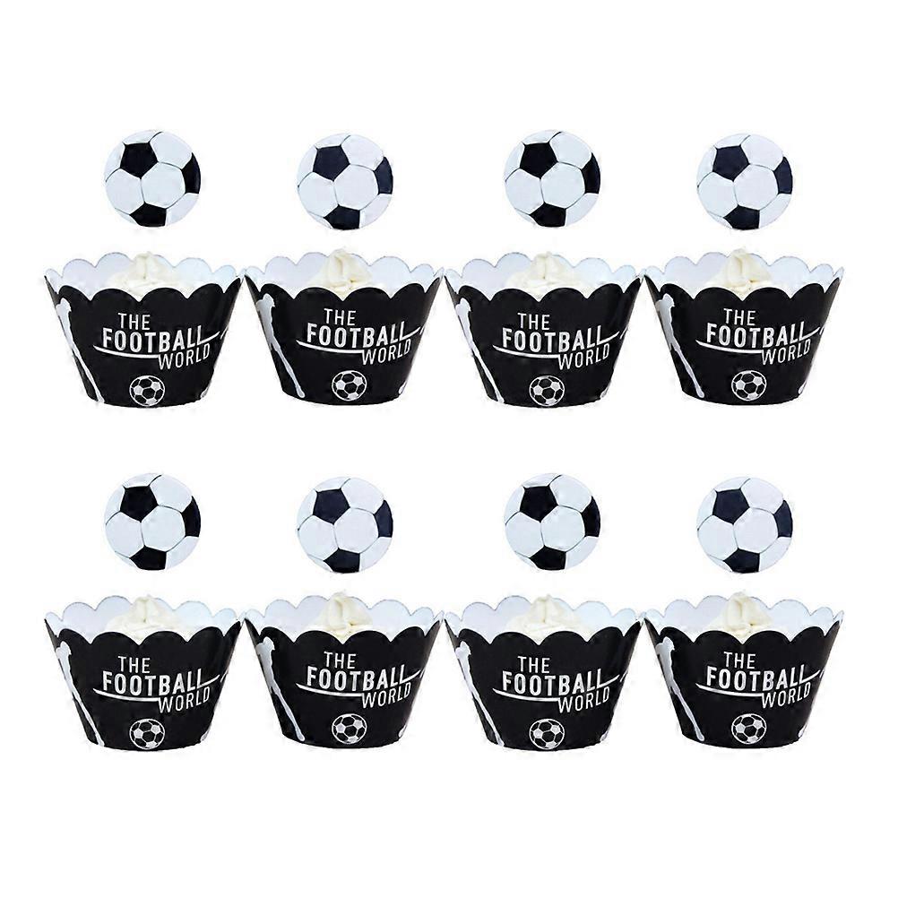 Soccer Birthday Cupcake Topper Football Party Cake Toppers Wrappers Set Garden Party Coated Paper Cake Decoration 48Set