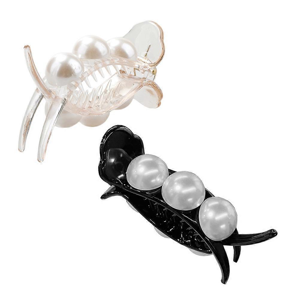 Pearl Hair Claw Clips Set 4pcs Black & Colorful Back Hair Clips for Women, Ideal for Bath, Makeup, Cooking & Daily Styling