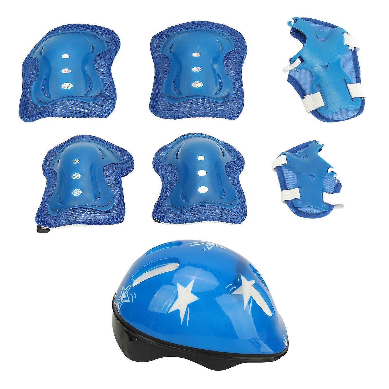Kids Bike Helmet Set Sports Protective Gear Adjustable Knee Pads Elbow Pads Wrist Guards Kids Cycling Protective Gear Set for Age 5 to 14 Blue