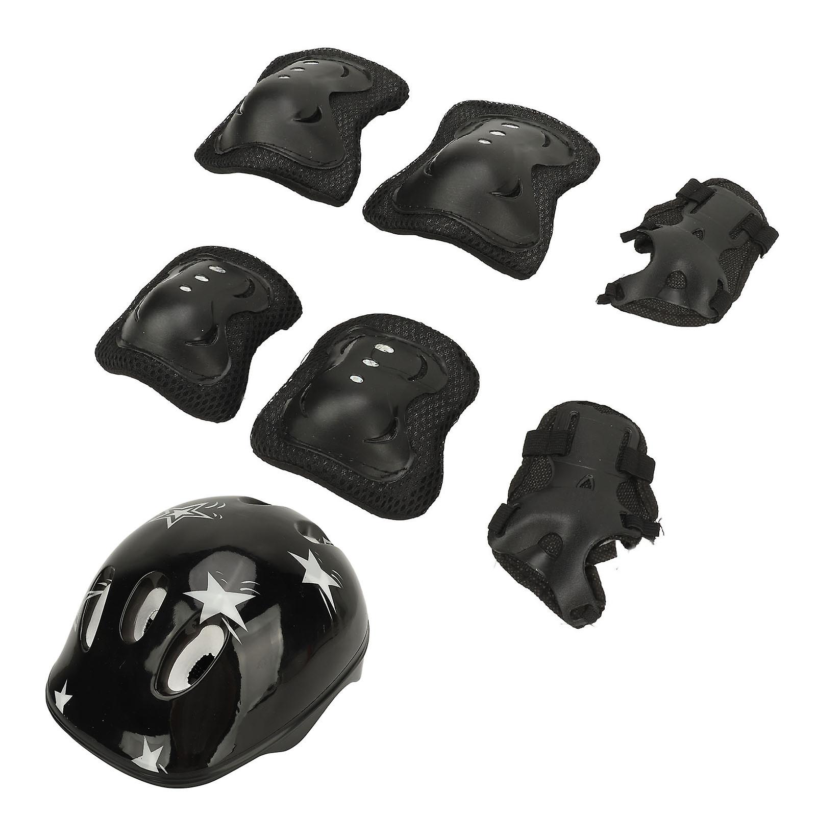 Kids Bike Helmet Set Sports Protective Gear Adjustable Knee Pads Elbow Pads Wrist Guards Kids Cycling Protective Gear Set for Age 5 to 14 Black