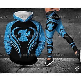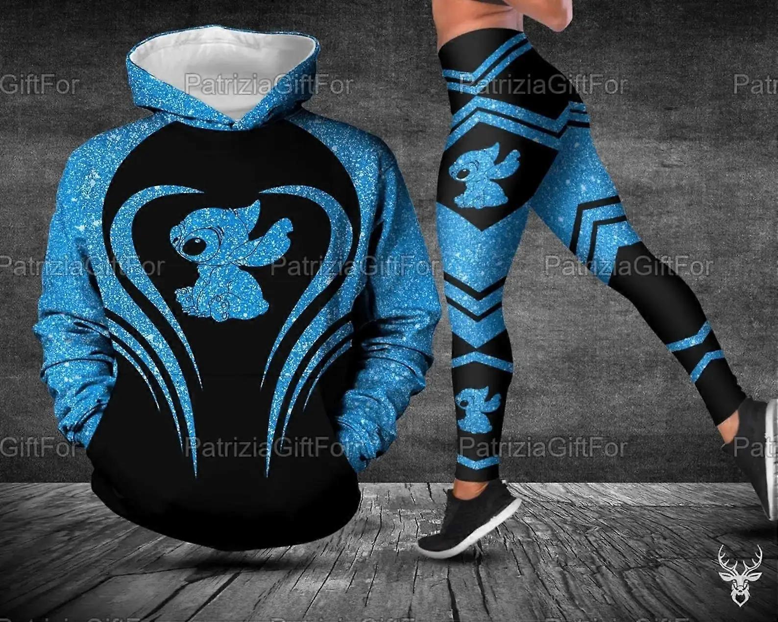 New Disney Stitch Women's Custom 3D Printed Hoodies and Leggings Set Knitted Casual Yoga Pants Sweatpants + Pullover Sweatshirt