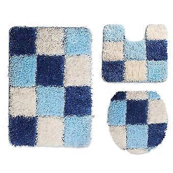 3 Piece European Geometric Plaid Bathroom Rug Set Flocking Water Absorbent Bath Mat Non-slip U Shaped Contour Carpet Toilet For Seat Lid Cover