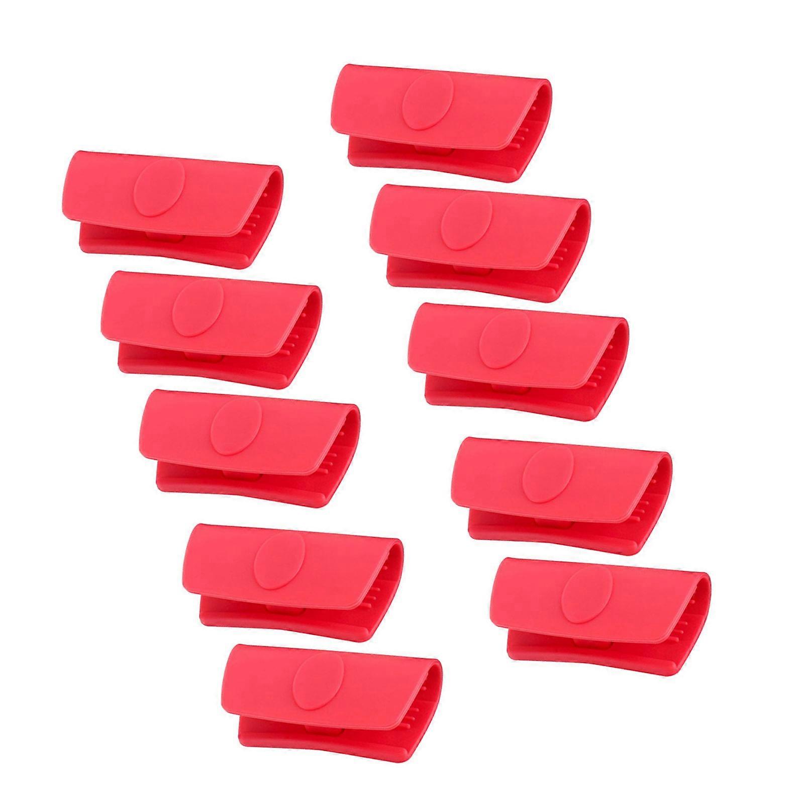 Set of 10 Heat Insulated Silicone Assist Handle Holders Protectors for Pots and Frying Pans Comfortable Grip Sleeves Red