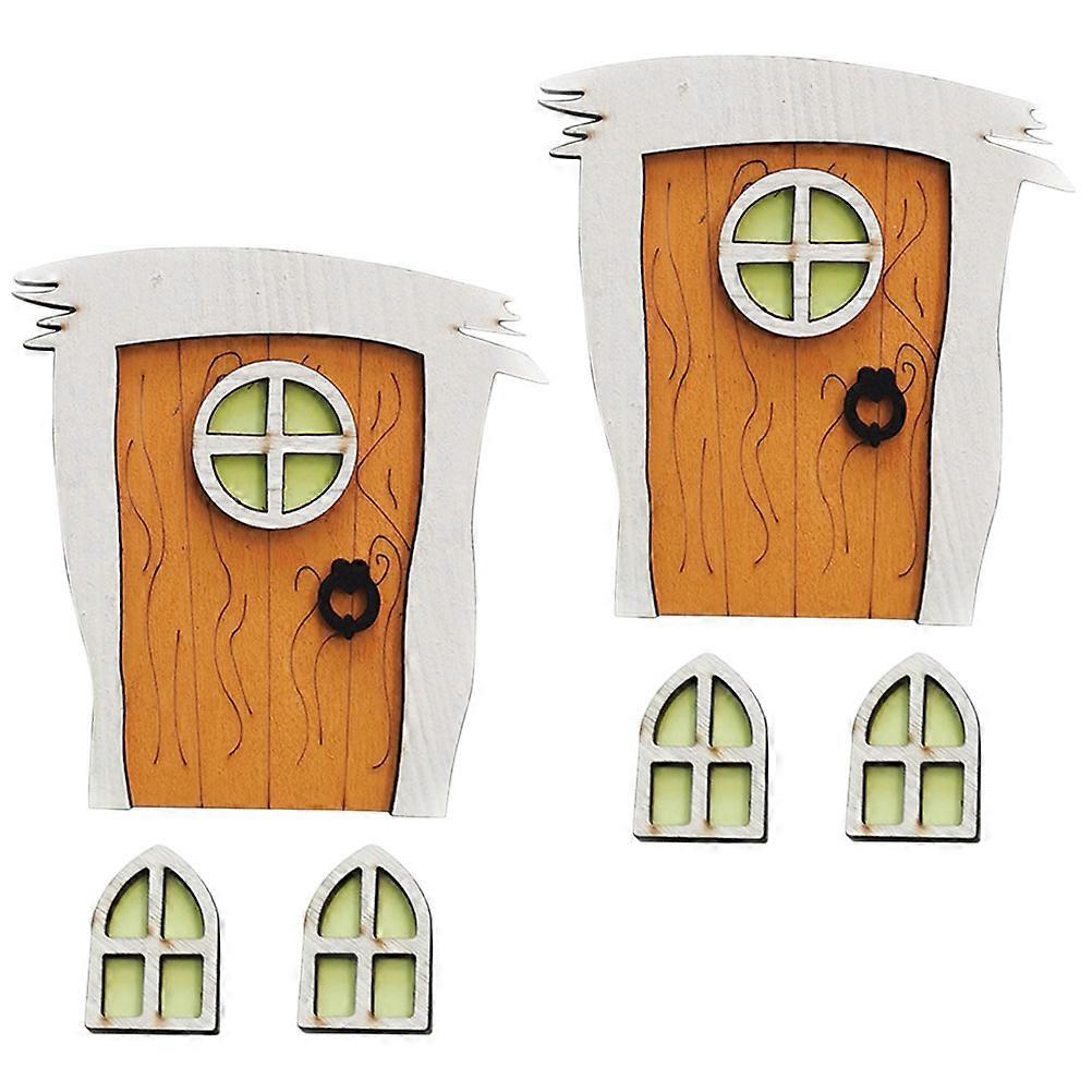 Wooden Fairy Door and Window Garden Ornament Set of 10