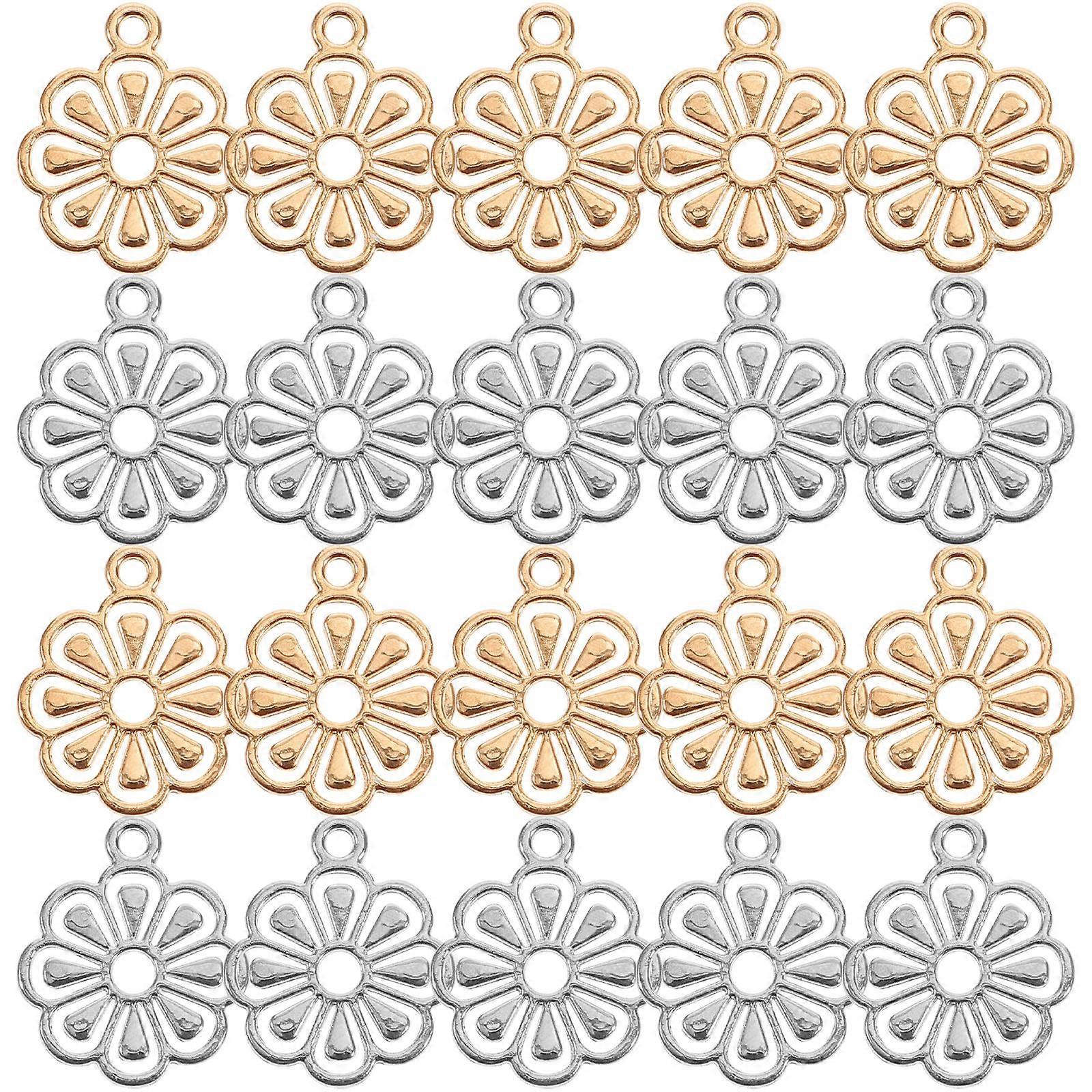 Alloy Flower Charm Pendants for Jewelry Making with Hanging Hole 100Pcs Set