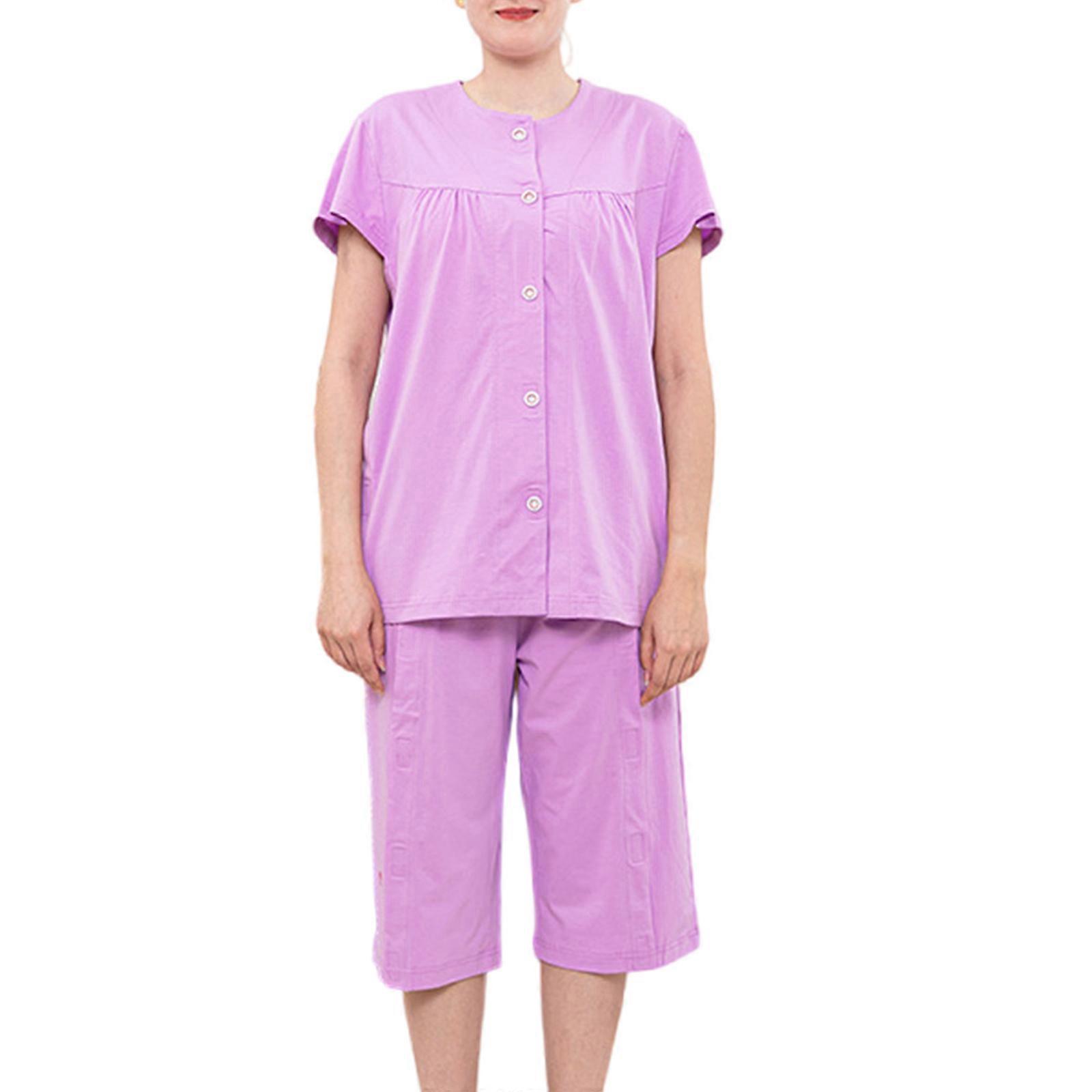 2Pcs Bedridden Patient Clothing Disabled Clothing Tear Away Nursing Shirts and Shorts Set Women Adaptive Clothing Purple XL