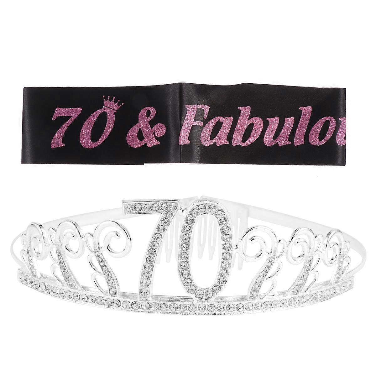 Birthday Headbands for Women Set of 2Pcs Tiara and Sash Celebration Party Supplies Crown Shape Assorted Color