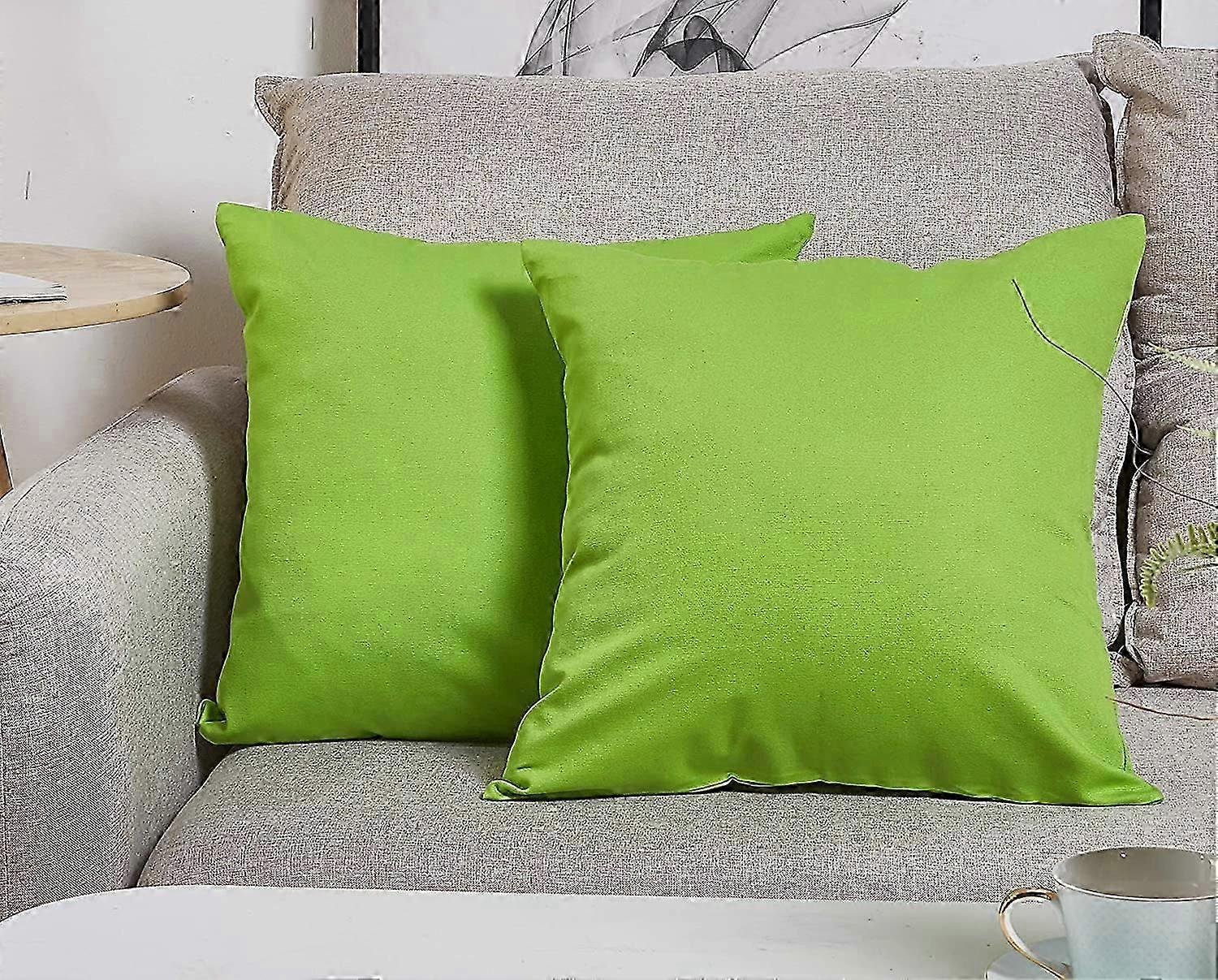 Set of 2 Handmade Decorative Solid 100% Cotton Canvas Throw Pillow Covers, 11 Colors Available - (18"x18" 2 Pieces, Apple Green)