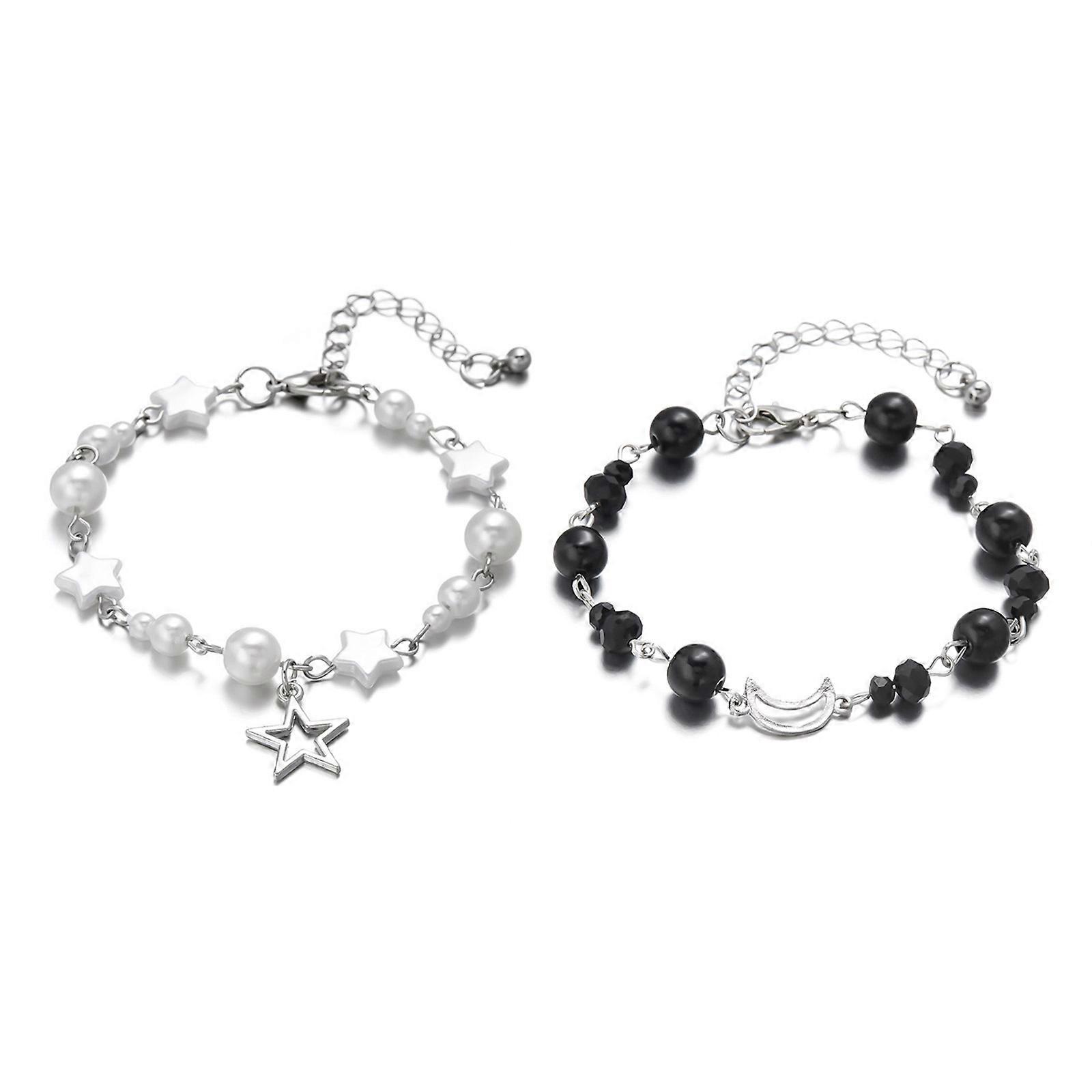 Set of 2 Handmade Star Moon Bracelets Beaded Bracelet Acrylic Texture Charm Bracelets Wrist Accessories for Party Wear