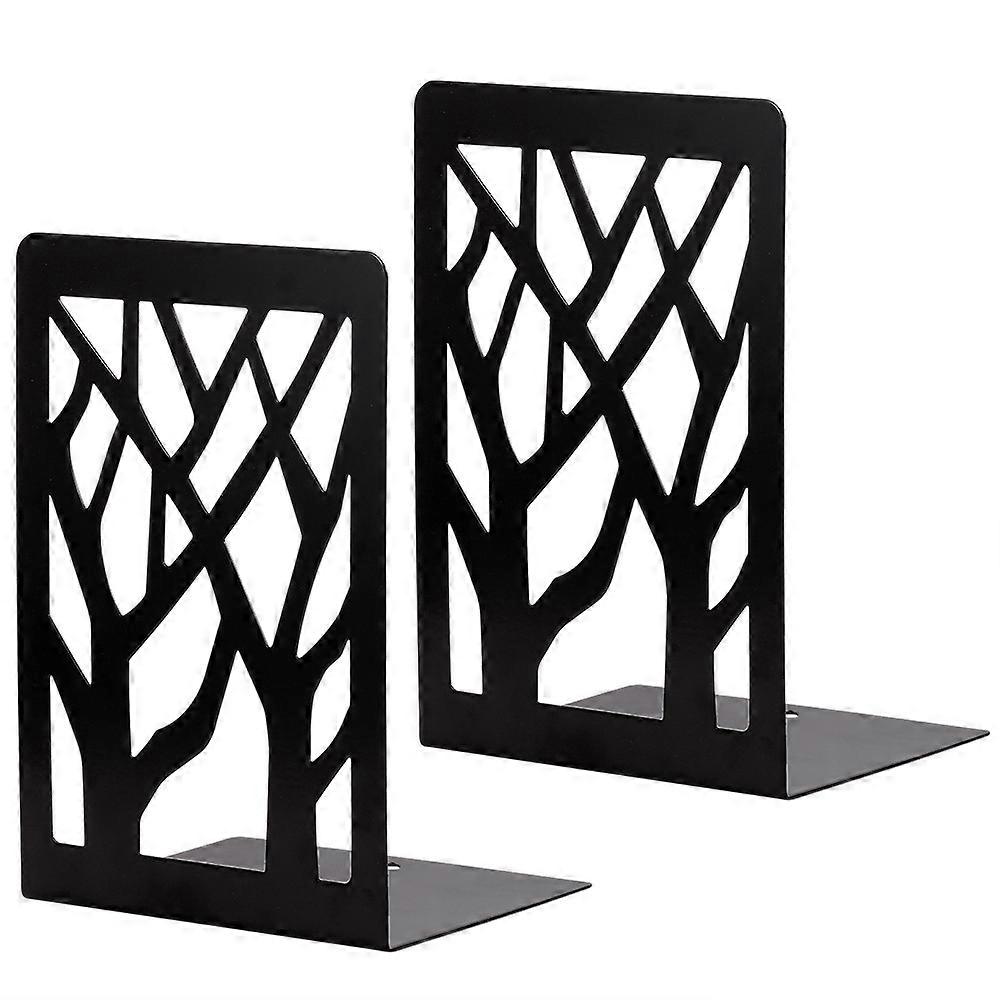 Set of 2 Black (Tree) Metal Bookends Press Wedge Book Block Desi