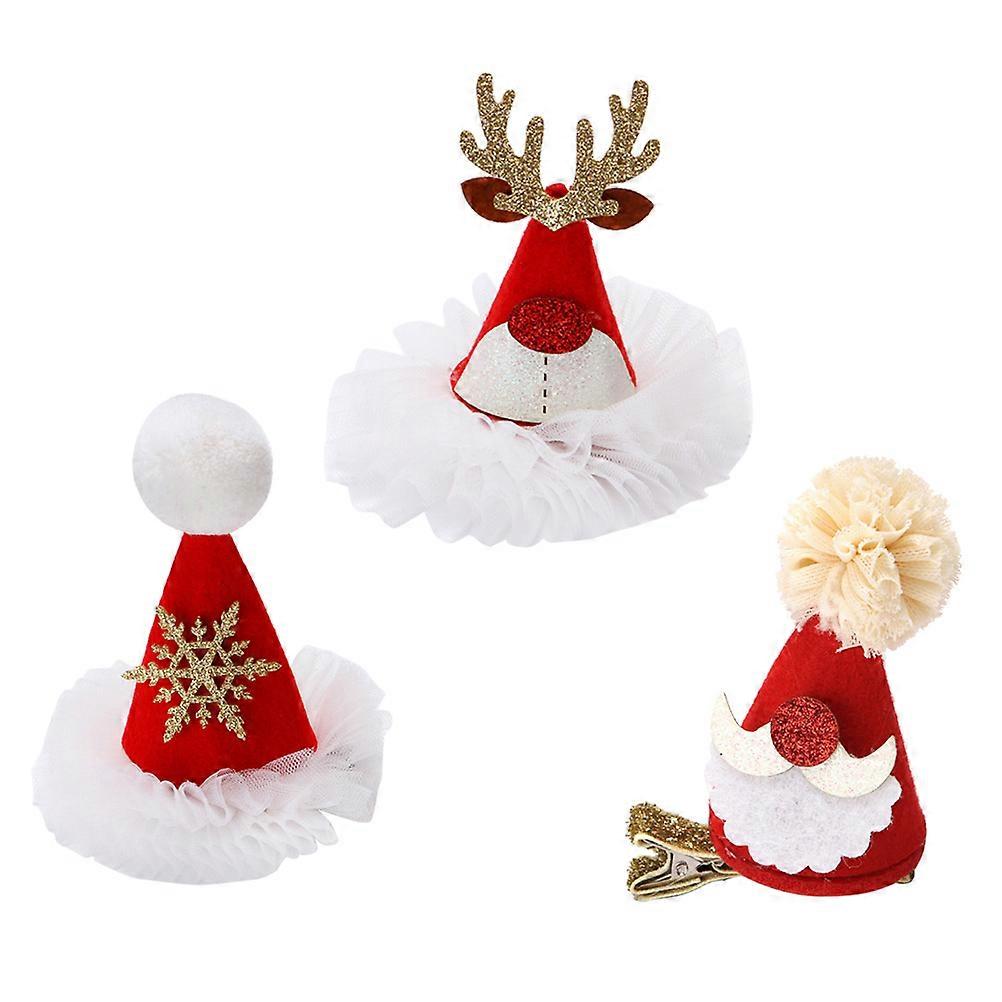 Santa Hat Hair Clips with Clip for Hair Decoration 3Pcs Set