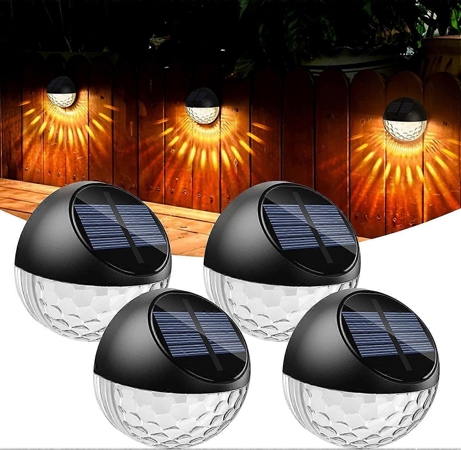 Set of 4 LED Solar Lights Outdoor Wall Light IP65 Waterproof Decorative Wall Lighting Warm White Light, Wall Fence Lights Patio Garden Front Door Stai