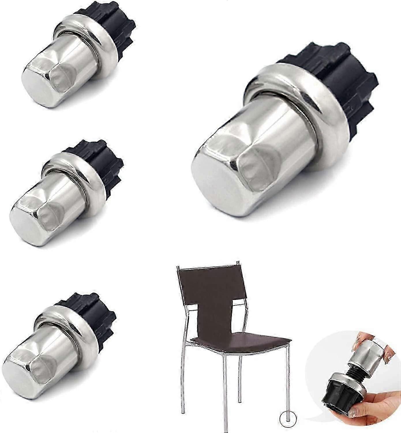 Set 4 picioare pentru mobilier, Otel inoxidabil/Plastic, Ajustabil, Argintiu/Negru