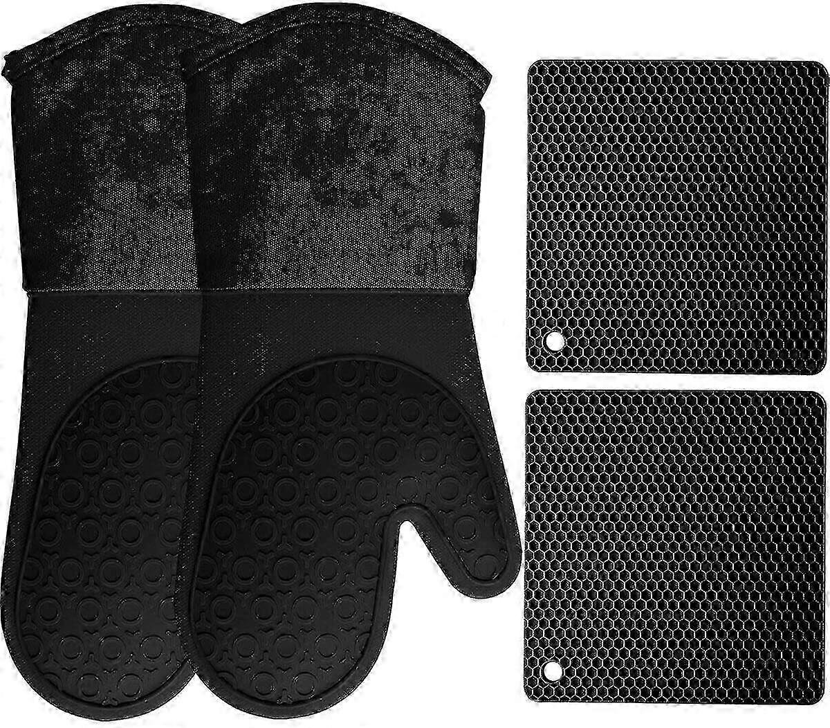 Set of 4 Silicone Oven Mitts and Pot Holders, Heavy Duty Cooking Gloves, Kitchen Counter Protectors (Black)