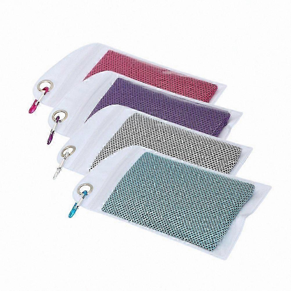 Set of 4 Quick-Dry Cooling Towels for Gym, Yoga, Running, Camping - Gray, Blue, Rosy, Purple