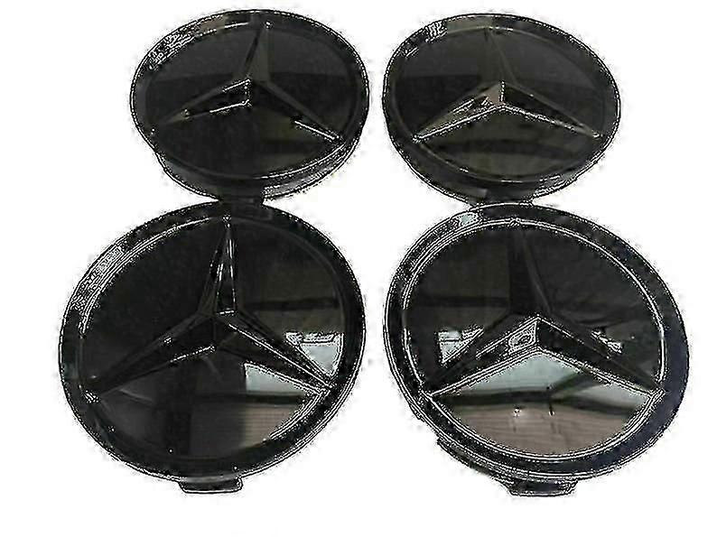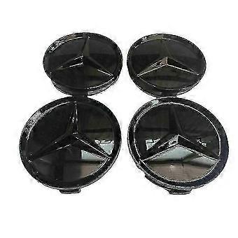 Set Of 4 Gloss Black Mercedes Alloy Wheel Center Caps 75mm